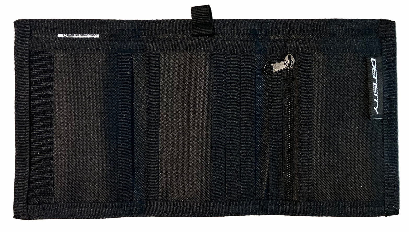 Cartera básica triple materiales sintéticos 100% poliéster, impresión directa sublimado, cierre interior monedero y tarjetero.