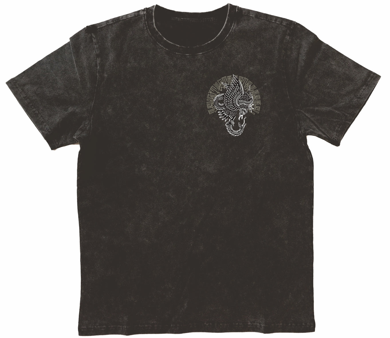 Playera básica manga corta100% algodón, proceso destructo (stonewash), estampado serigrafia, color de la tela cafe stone.