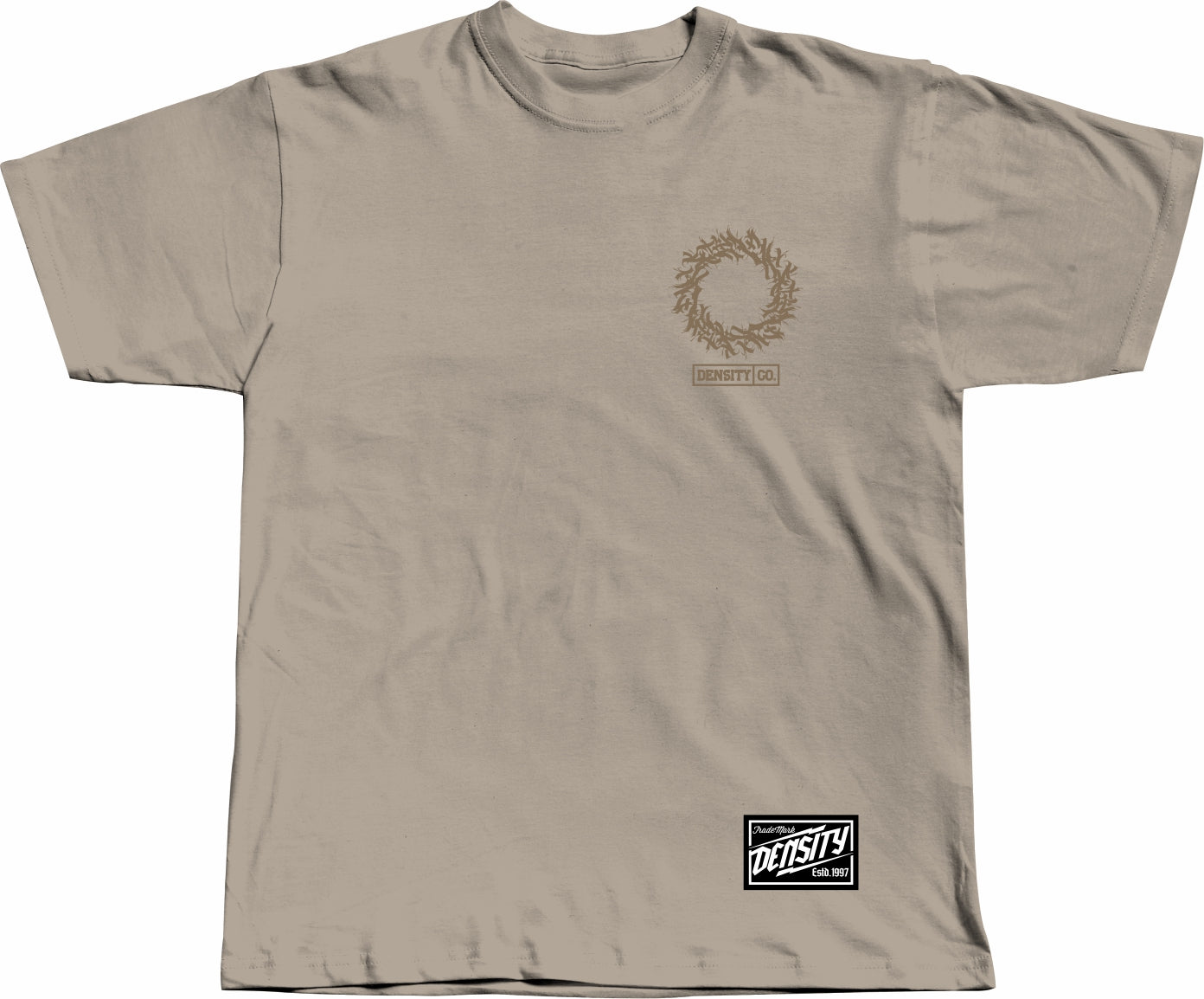 Playera oversize manga corta, 50% algodón 50% poliéster peinado, pesado de 260 gramos, estampado serigrafia y tinta puff (inflable), color de la tela camel.