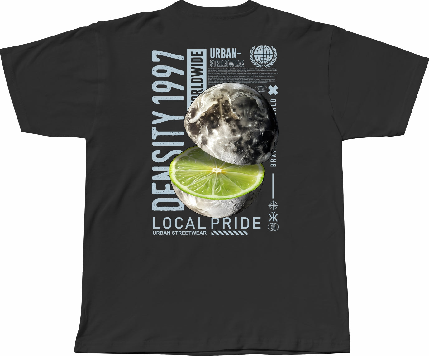 Playera oversize manga corta100% algodón peinado pesado de 240 gramos, estampado serigrafia y Direct to Film (DTF), color de la tela negro.
