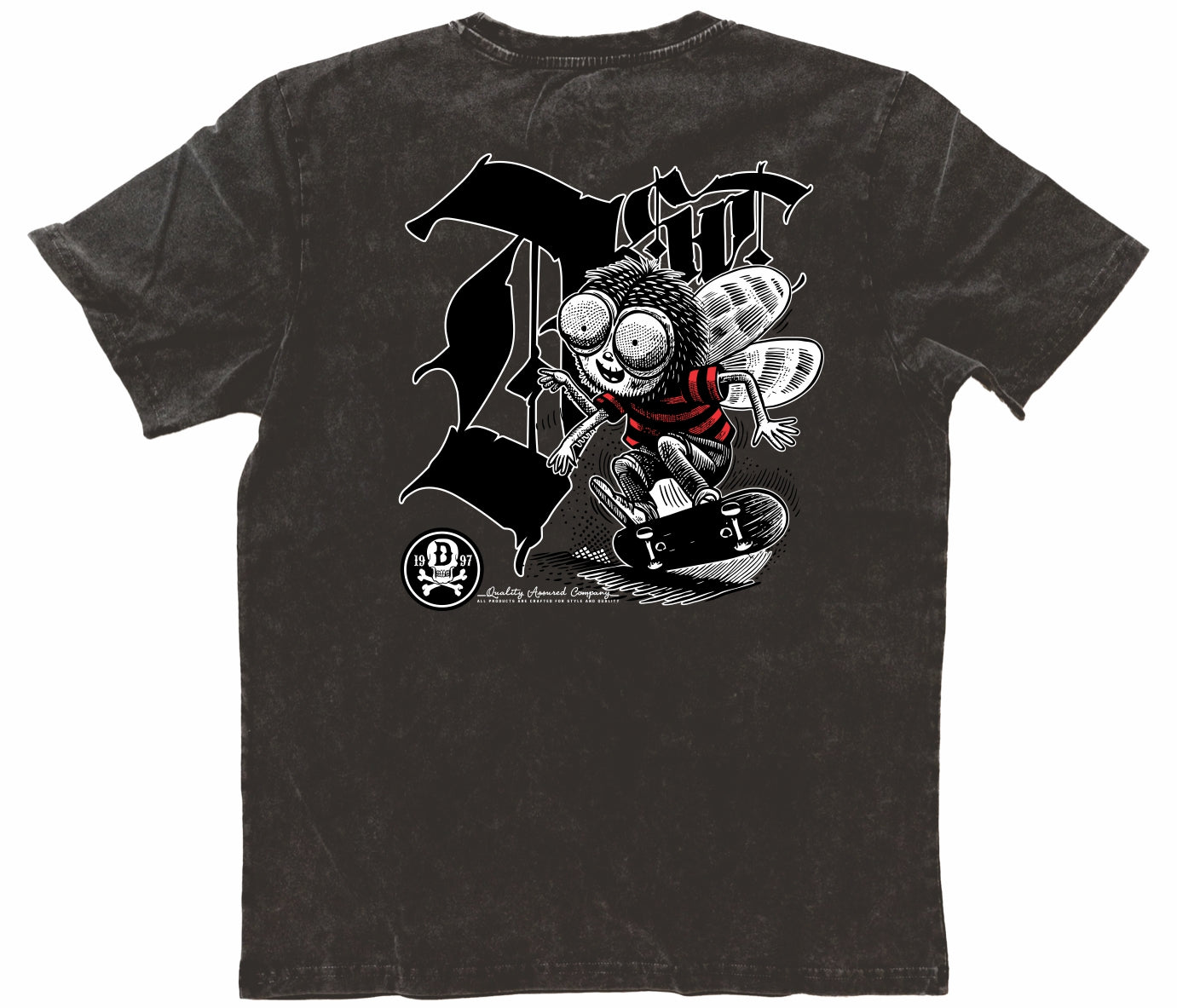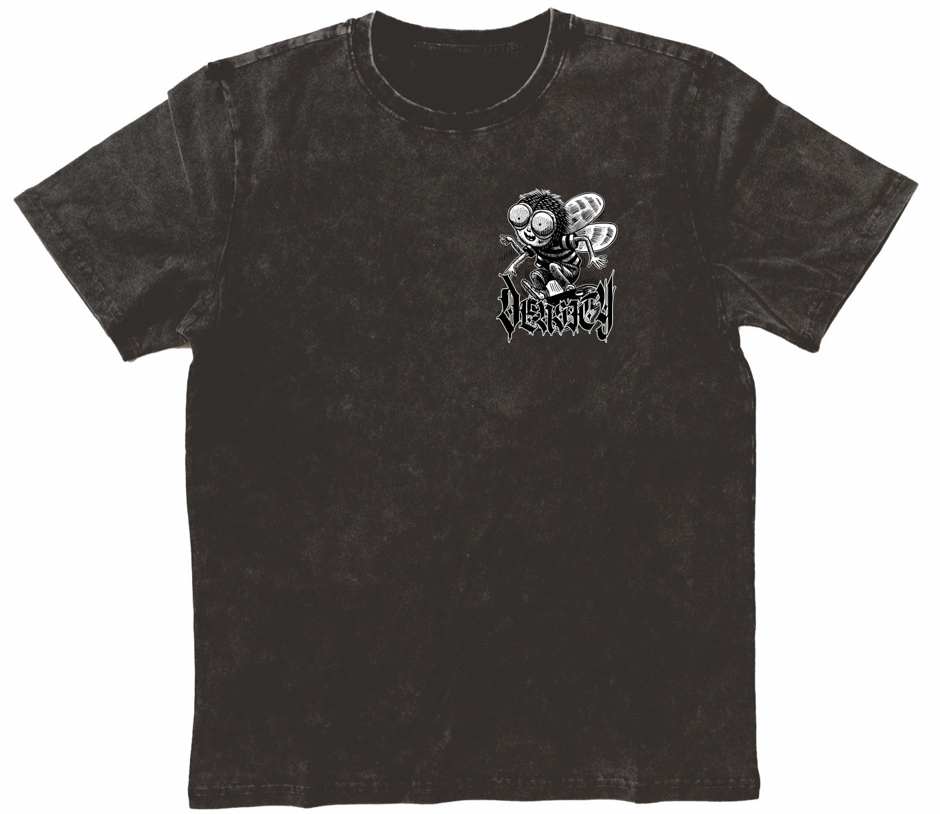 Playera básica manga corta100% algodón, proceso destructo (stonewash), estampado serigrafia, color de la tela chocolate stone.
