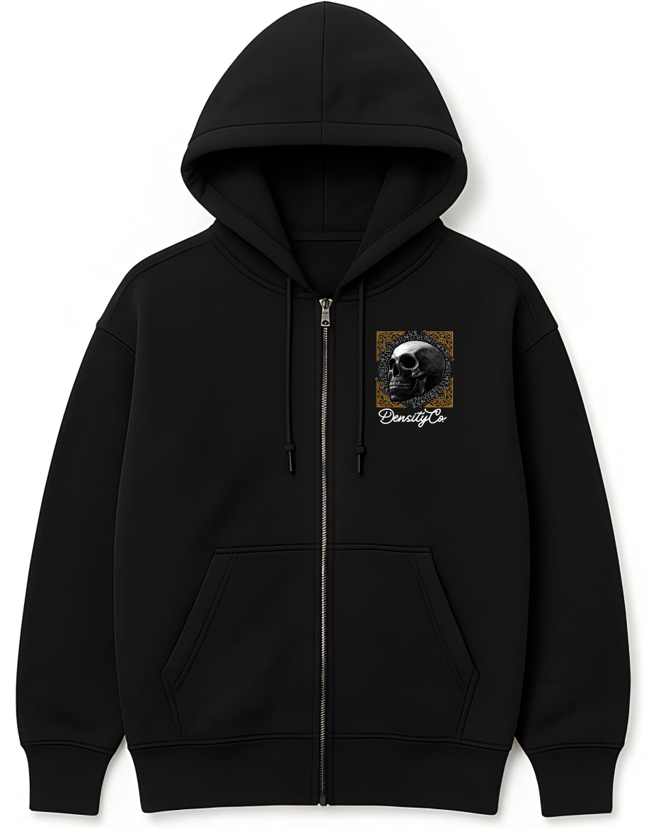 Sudadera cierre, capucha y cangurera, 50% algodón 50% poliéster, impresion Direct To Film (DTF alta resolucion), color de la tela negro.